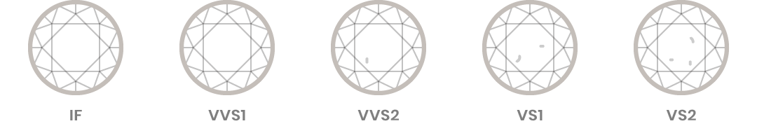 La purezza del diamante è classificata attraverso uno standard internazionale: IF, VVS1, VVS2, VS1, VS2, SI1, SI2, ecc.